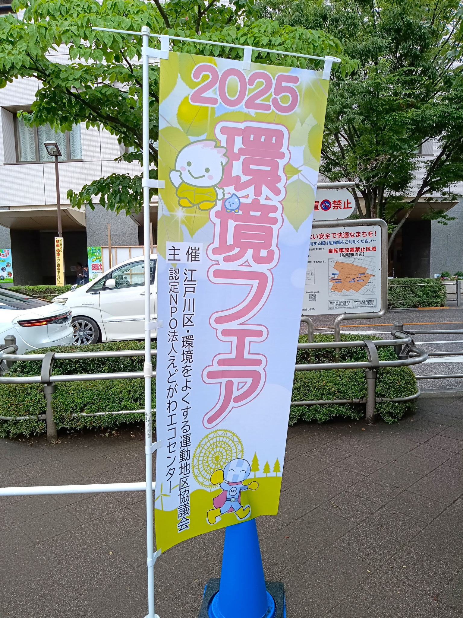 6月15日、恒例の江戸川区環境フェアが開催されました。今年の会場は、改装中の総合文化センターに代わってタワーホール船堀と船堀駅北口広場です。足温ネットは、ソーラークッカー等の展示実演のため船堀駅北口広場での出展でしたが、午前中は雨交じり。午後からは雨も上がり、時折晴れ間もあり、ソーラークッカーでお湯が沸く様子が来場者の興味を引いていました。
