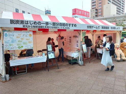 初めての会場で、駅前ということもあって、都議選候補者の演説やらユニセフの宣伝活動が続く中での出展でしたが、来場者にはソーラークッカーやソーラーフードドライヤーに関心を持っていただき、再生可能エネルギーや脱炭素について知っていただく良い機会になったと思います。