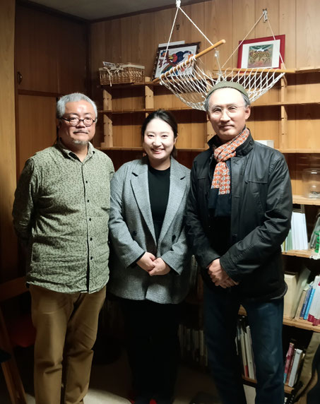 11月17日に韓国の大学教授イ・サンフンさんが来訪され、発電所の見学とオフグリッドハウス松江の家で足温ネットの活動を紹介しました。イさんは気候変動と脱成長について研究するため法政大学の招聘教授として3カ月間滞在され、様々な方々にインタビューしておられます。この日は、グリーンピースジャパンで地域活動を担当するやーゆさんも参加され、脱成長について意見交換しました。イさんは、「若者に脱成長を伝えるには」との問いに対して、分配が重要だと語り、私からは緩和策よりも適応策の観点からアプローチしてはどうかと提案しました。よい意見交換ができたと思います。